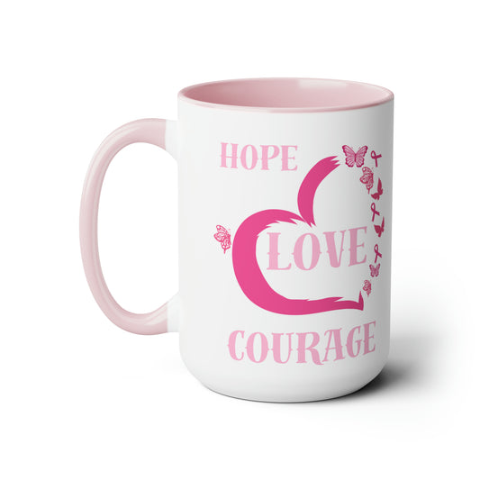 Hope, Love, Courage Two-Tone Coffee Mugs, 15oz